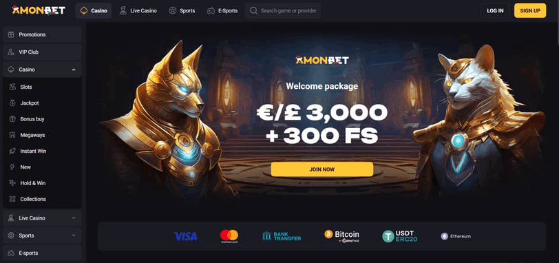 8. AmonBet – Bonuspaket bis 180 € – Ausgewogene Mischung aus Klassikern und neuen Spielen