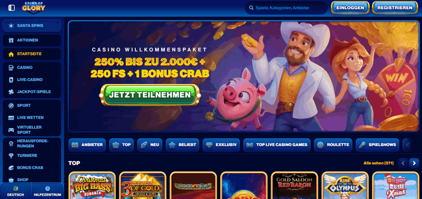 Spins of Glory – OASIS-freier Anbieter mit Bonus-Crab-Feature