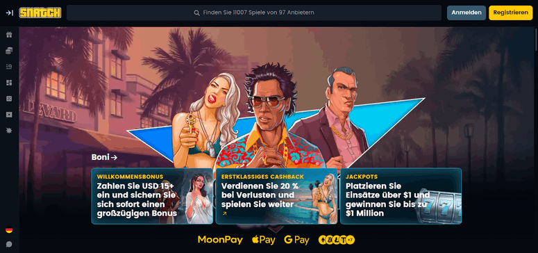 In diesem Beitrag beschreibe ich meine Snatch-Casino-Erfahrungen aus einem umfassenden Praxistest. Das Casino versteht sich als moderne Online-Plattform und hebt besonders sein ungewöhnliches Bonussystem hervor. Mit mehr als 6.000 Spielen, einem starken Revolution Casino-Bereich und einem Cashback ohne Umsatzanforderungen unterscheidet sich Snatch Casino deutlich von vielen anderen Anbietern.