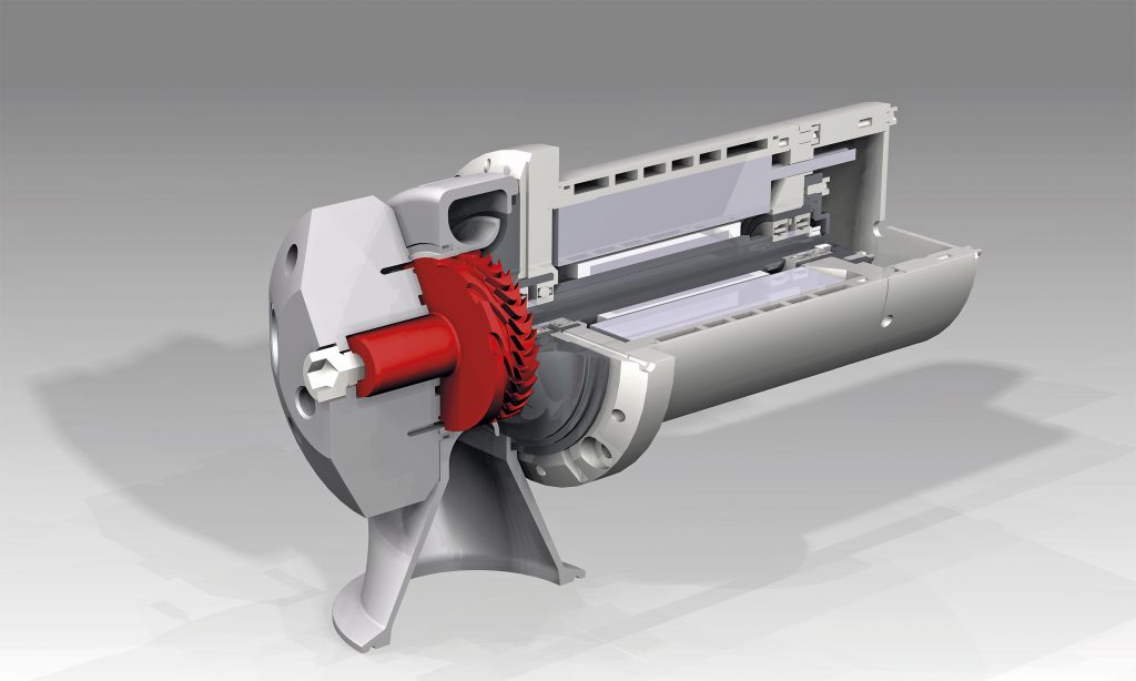 Der direkt an die Turbinenstufe gekoppelte Generator liefert elektrische Energie für Nebenaggregate der Fahrzeuge. Als Arbeitsmedium dient ein Ethanol-Wasser-Gemisch, das eine maximale Temperatur von rund 260 °C bei einem Druck von 40 bar beim Eintritt in die Turbine aufweist. Dieser Druck führt bei der einstufigen Turbine zu einer Überschalldurchströmung der Turbinenstufe mit Rotordrehzahlen bis zu 110.000 min-1. An die eingesetzten Werkstoffe werden demzufolge höchste Anforderungen gestellt. So besteht der Stator der Turbine aus dem nichtrostenden austenitischen Edelstahl der Sorte 1.4305, der die geforderte mechanische Zuverlässigkeit des druckbeanspruchten Bauteils sicherstellt. Für die Rotorwelle findet ein weichmagnetischer Vergütungsstahl der Sorte 1.6582 Verwendung, der hohe Anforderungen an Festigkeit und Zähigkeit erfüllt.